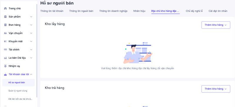Địa chỉ lấy hàng và trả hàng có thể cập nhâp nhiều lần.